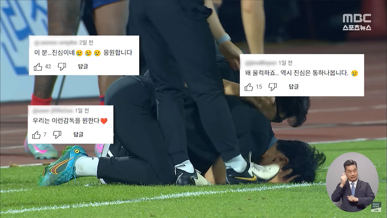 하지만 선수가 아닌 코칭스태프가 울음을 터뜨리는, 그것도 오열하는 장면은 축구 팬들도 쉽게 보지 못했을 겁니다.