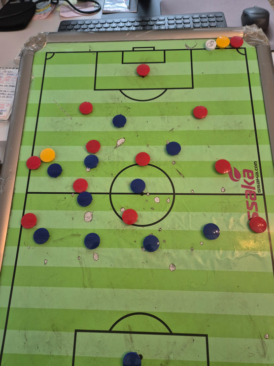 나름 팀을 대표하는 '감독 대행'이어도 선수들과 똑같이 축구화를 신고 다니는 점은 물론, 버스를 내리는 순간에도 작전판을 항상 품에 안고 있는 모습도 인상적이었습니다.