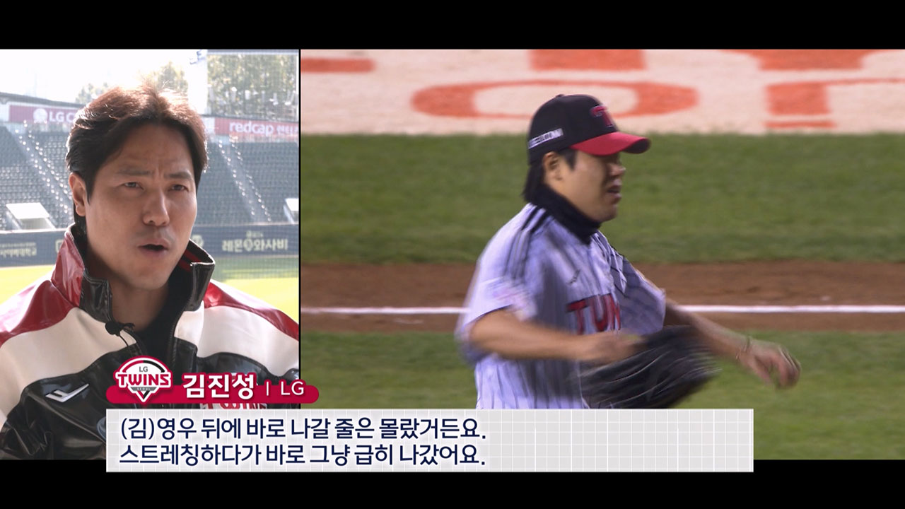 시리즈의 분수령이 될 수도 있었던 2차전, 김진성은 몸도 거의 풀지 못하고 마운드로 나왔다고 당시 상황을 돌이켜봤습니다.