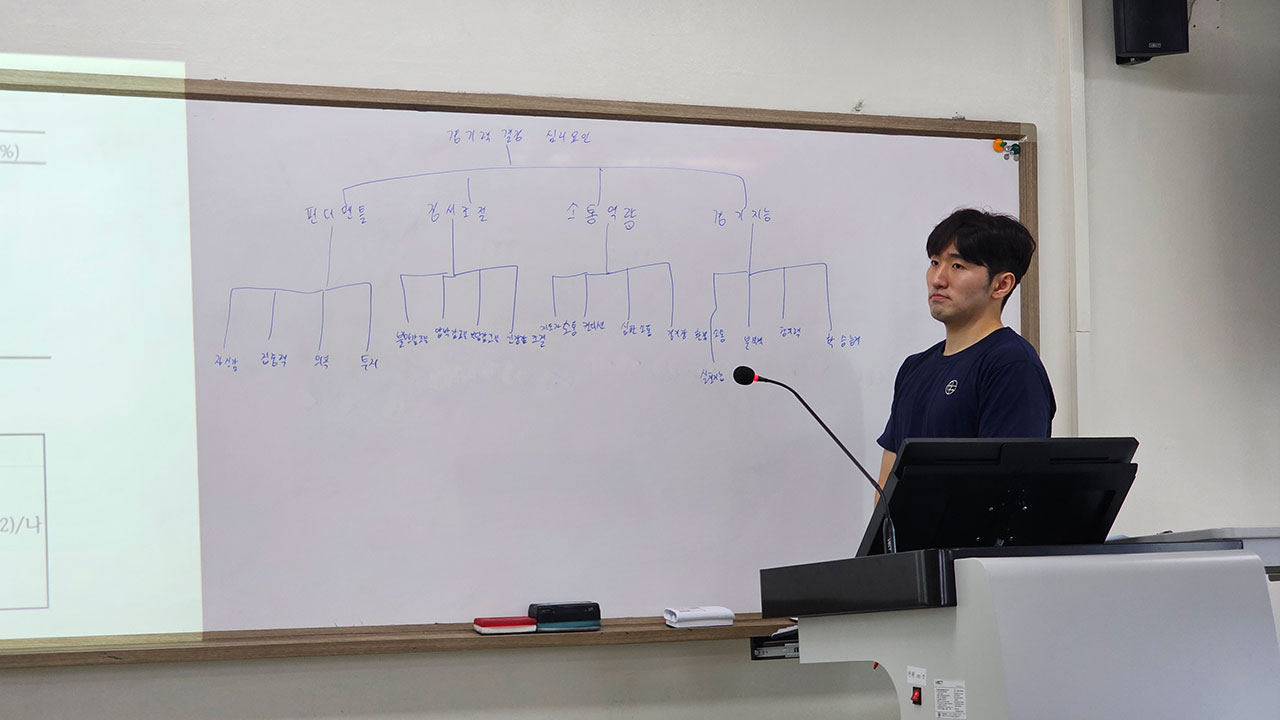 A. 경기력이 우수한 선수 중에 트라우마를 겪고 재기에 성공하는 사람과 못하는 사람들의 심리적 차이를 알아가 보고 싶어요. 한 번에 될까 싶지만 일단 그게 목표입니다. <박사 논문도 할 수 있다?> 네. 할 수 있다!