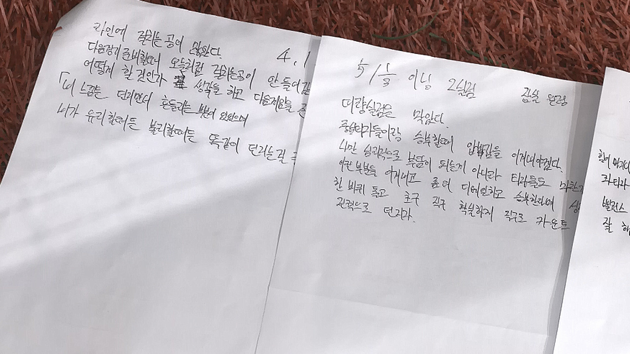 A. 마운드에서 내려오자마자 생각나는 것들을 최대한 빨리 적으려고 해요. 경기장에선 티를 안 내지만, 승부욕이 강하다 보니 스스로에게 화가 날 때가 많은데요. 그 화 때문에 (시간이 지나면) 기억이 안 나는 경우가 많아서 '왜 안타를 맞았는지'와 같은 느낀 점을 바로바로 쓰려고 합니다. '다음 경기에서는 이렇게 하지 말아야겠다', '이런 상황에서는 어떤 마음가짐으로 던져야 한다' 같은 내용을 적으면서 경기를 복기하는 거죠.